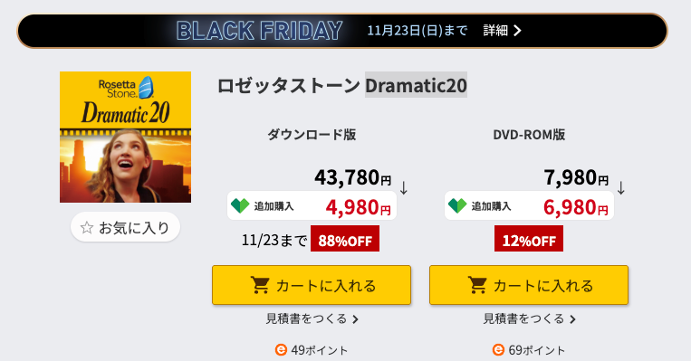 ロゼッタストーン Dramatic20が、最大割引率がなんと「88%」です!